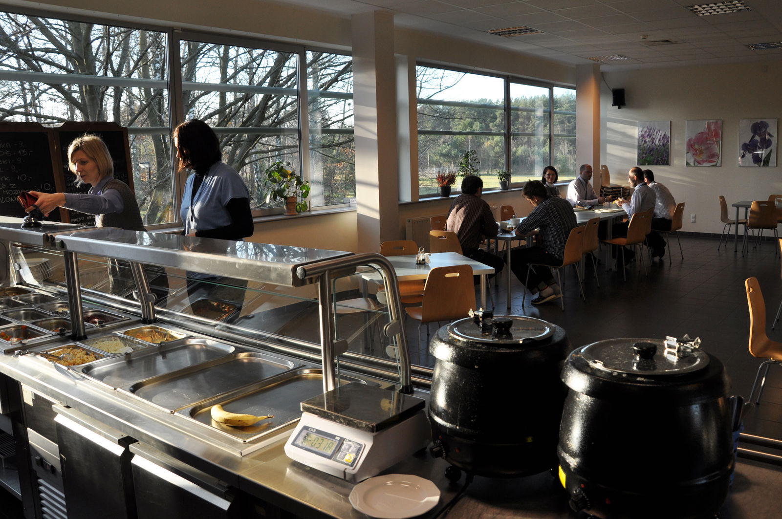 Strefa socjalna wyposażona w ekspresy do kawy, lodówki i kuchenki mikrofalowe.